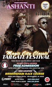 This is a free event you don’t want to miss! Join us at Birmingham Race Course to see live performances by Ashanti and October London! Bring your friends, family, and lawn chairs. Food trucks will be on-site as security is strictly enforced!
